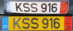 ![]() Cypriot regular legal standard number plate. | |