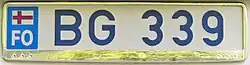 ![]() Current regular private legal standard number plate from the Faroes. | |
