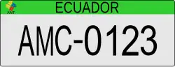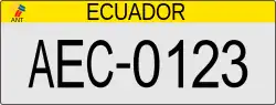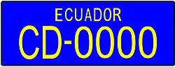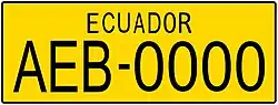 The plates have a XX-0123 format with ECUADOR in black capital letters on top of the plates. The first two letters denote different types of plates based on the user of the vehicle.