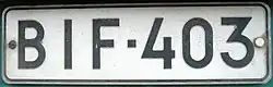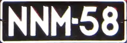 - 1960: A white border was added to the plate. The registration number consisted of three letters, a dash and one or two numbers.