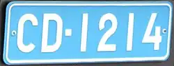 A diplomatic number plate has a blue background and white reflective lettering. The letters are either "C" or "CD", for French Corps Diplomatique. CD plates are with maximum of four numbers and C maximum of five numbers.
