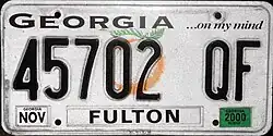 - ^ a b c d Tanner, Eric N. "Georgia License Plates". allaboutlicenseplates.com. Retrieved January 21, 2016.