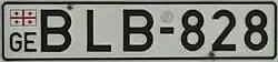Vehicle registration plates of Georgia are composed of an embossed serial of two letters, a hyphen, three numbers, a hyphen, and two letters (e.g. AB-115-BA), in black on a white background with a blue vertical strip on the left.[1] The plates are issued in the Latin alphabet. Georgian registration plates are the same size as the most common European registration plate. All plates have the abbreviation "GE" in the lower left corner of the plate and the national flag in the upper left corner. This set of new style registration plates have been in use since 1 September 2014.[2]