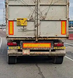 | Colour (rear) | Black on yellow |