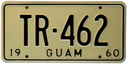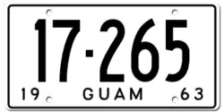 1961 | Embossed white on black with border line; "19 GUAM 61" at bottom | 12-345 | 1 to approximately 14-100 |