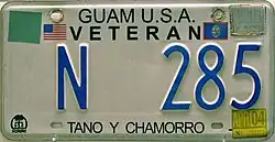 Veteran—United States Navy | Blue on reflective white with full-color graphics of the flag of the United States and the flag of Guam | N 123 |