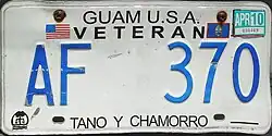 Veteran—United States Air Force | Blue on reflective white with full-color graphics of the flag of the United States and the flag of Guam | AF 123 | ||