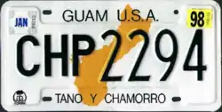 1994 – February 26, 2009 | Embossed black on reflective white; gold map graphic in center | Tano Y Chamorro[2] | Coded by municipality:
