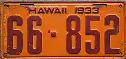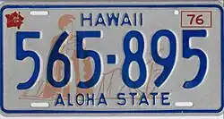 - ^ a b c d e f g Tanner, Eric N. "Hawaii Passenger License Plates". allaboutlicenseplates.com. Retrieved July 5, 2021.