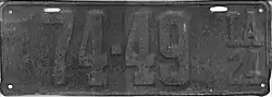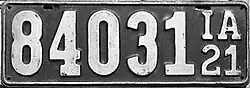 1921 | Embossed silver serial on black plate with border line; "IA 21" at right | none | 123456 | 1 to approximately 441000 | |