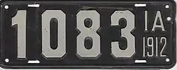 1912 | Embossed white serial on black plate; "IA 1912" at right | none | 12345 | 1001 to approximately 46000 | |