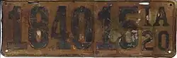 1904 to 1910 (prestate) | Riveted metal numbers on black leather plate, "IA" riveted on right | 12345 | 1 to approximately 13000 |