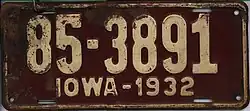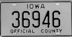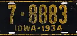 - ^ a b c d Tanner, Eric N. "Iowa Passenger License Plates". allaboutlicenseplates.com. Retrieved November 17, 2020.