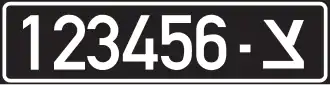 | 21 | Since 1980 | Diplomatic vehicle (with "CD" at the left) or Consulate vehicle (with "CC" at the left) or Red Cross vehicle (with "ICRC" at the left), white background, All manufacturers |