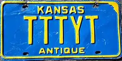 The owner can also choose to use an original Kansas license plate with correct year stickers instead (Speciality Antique).[14] | |