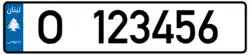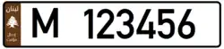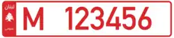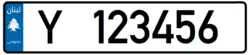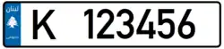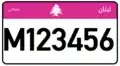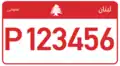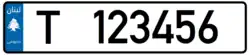 ![]() Lebanese regular legal standard number plate (EU sized). | |