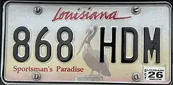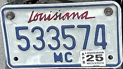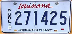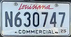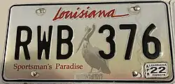 - ^ a b c Tanner, Eric N. "Louisiana Passenger License Plates". allaboutlicenseplates.com. Retrieved November 20, 2020.