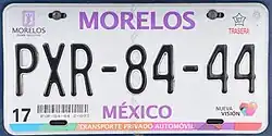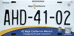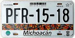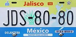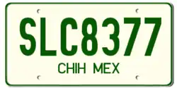 Vehicle registration plates of Mexico are issued with unique visual designs by each state, but with a single national numbering system, such that serials are not duplicated in multiple states.[1] Most states change designs approximately every three years, with each state having its own plate replacement cycle. Every year, owners of Mexican-registered vehicles pay the tenencia or revalidación de placas (car plates renewal tax). A set of Mexican plates includes one pair of plates, a windshield sticker, and in some states a plate sticker. The international code for Mexico is "MEX".