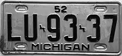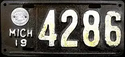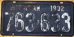 - ^ "Old Michigan License Plates". LeatherLicensePlates.com. Retrieved May 24, 2017.
