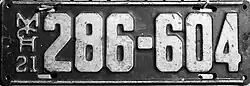 1921 | White on black; stylized "MICH 21" at left | none | 123-456 | 1 to approximately 476-000 | |