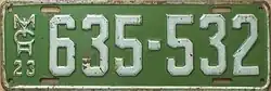 1923 | White on green; stylized "MICH 23" at left | none | 123-456 | 1 to approximately 730-000 | |