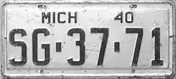 White on black; "MICH EXP. 8-31 40" at top | none | Half-year plate. | |||