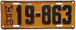 1920 | Black on orange; stylized "MICH 20" at left | none | 123-456 | 1 to approximately 414-000 | |