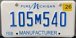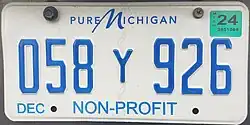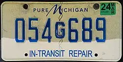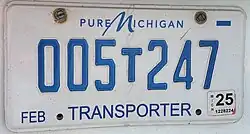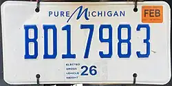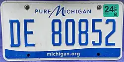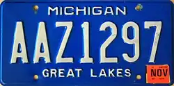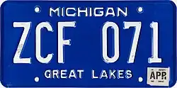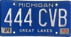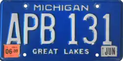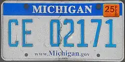 - ^ a b c Tanner, Eric N. "Michigan Passenger License Plates". allaboutlicenseplates.com. Retrieved November 17, 2020.