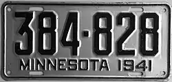 1941 | Embossed black serial on silver plate with border line; "MINN - 1941" or "MINNESOTA 1941" centered at bottom | none | 123-456 | 1 to approximately 763-000 | |