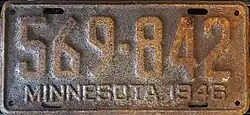 1947 | As 1941 base, but with "MINN - 1947" or "MINNESOTA 1947" at bottom | none | 123-456 | 1 to approximately 717-000 | |