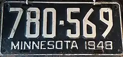1948 | As 1940 base, but with "MINN - 1948" or "MINNESOTA 1948" at bottom | none | 123-456 | 1 to approximately 801-000 | |