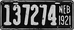 1921 | White on black; "NEB 1921" at right | none | 123456 | 1 to approximately 272000 | |