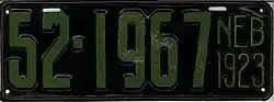 1923 | Green on black; "NEB 1923" at right | none | 1-12345 10-1234 |