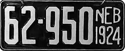1924 | White on black; "NEB 1924" at right | none | 1-12345 10-1234 |