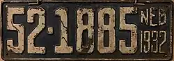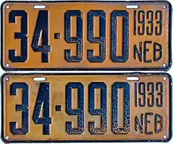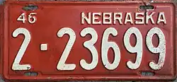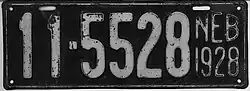 - ^ "Old Nebraska License Plates". LeatherLicensePlates.com. Retrieved May 25, 2017.