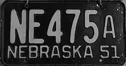 1951 | White on black; "NEBRASKA 51" at bottom | none | A1234A AB123A |