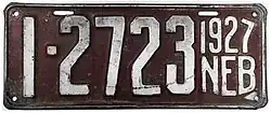 1927 | White on maroon; "1927 NEB" at right | none | 1-12345 10-1234 |