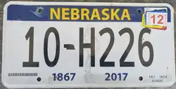 - ^ a b "Nebraska License Plates". www.licenseplates.cc. Retrieved July 13, 2024.