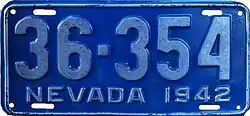 1936 | Embossed silver serial on dark blue plate with border line; "NEVADA 1936" at bottom | 12-345 | 1 to approximately 31-000 | |