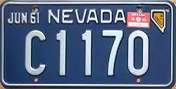 - ^ a b c Tanner, Eric N. "Nevada Passenger License Plates". allaboutlicenseplates.com. Retrieved November 11, 2020.