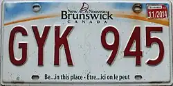 - ^ a b c d e f g h i j k l m n "New Brunswick License Plates". www.licenseplates.cc. Retrieved December 5, 2023.