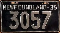 1935 | Embossed silver serial on black plate with border line; "NEWFOUNDLAND-35" at top | none | 1234 | 1001 to approximately 3900 | |