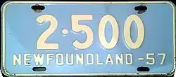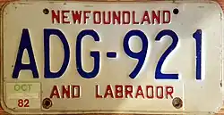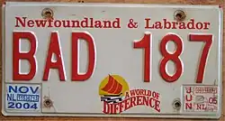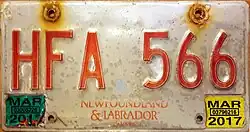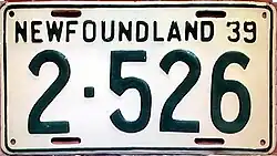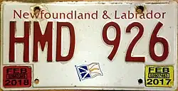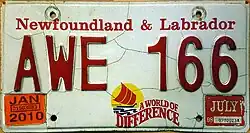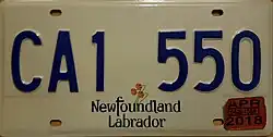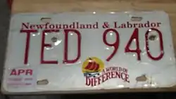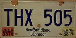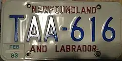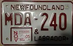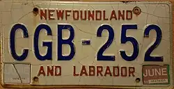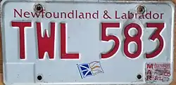 - ^ Tanner, Eric N. "Newfoundland and Labrador Passenger License Plates". allaboutlicenseplates.com. Retrieved December 1, 2020.