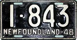 1948 | Embossed white serial on black plate with border line; "NEWFOUNDLAND-48" at bottom | none | 1-234 | 1-001 to approximately 8-000 | |