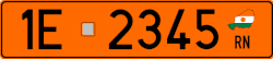 License plate, Niger with European shape and size. The current scheme of regular license plates for private vehicles Niger introduced in 2005. It has 1A2345 format, where 1 - the area code, A - Series, 2345 - number. Regular plates have a white background with black signs. At the right side of the plate are image maps of the country in the colors of the national flag or a simple black silhouette of the country, under which the code has RN. There is a two-line version of license plates. License plate for motorcycles format: A1 / 2345 where A - Series 1 - a region code 2345 - number.[1]