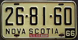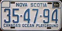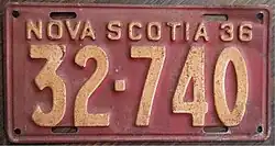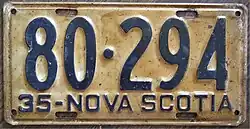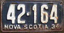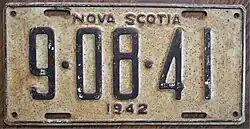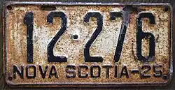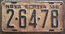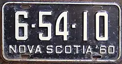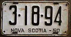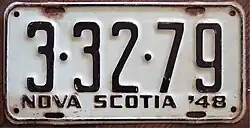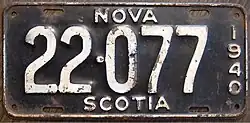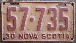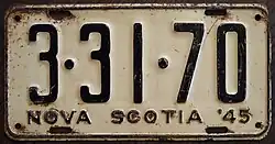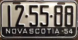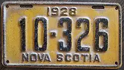 - ^ a b c Tanner, Eric N. "Nova Scotia Passenger License Plates". allaboutlicenseplates.com. Retrieved November 17, 2020.