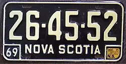 - Nova Scotia licence plates, 1969–present Archived 2021-04-27 at the Wayback Machine