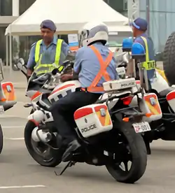 Plates with a red Z and in the range ZP-000 to at least ZP-020 are issued to motorcycles of the Royal Papua New Guinea Constabulary. These were introduced in 2017. |