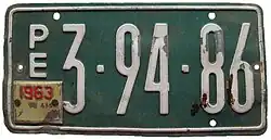 The second character of these plates first takes on a numerical value of 1 to 9 (in order) followed by the number 0, and then the letters of the alphabet in alphabetical order.[5] All vehicles now are issued the so-called "third plate" which is a windshield sticker that includes an RFID chip. The RFID chip allows the police to electronically verify the registration of the vehicle with a hand-held reader. The third plate cannot be removed from the windshield without it being destroyed.[3]