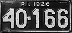 1926 | Embossed white serial on black plate with border line; "R.I. 1926" centered at top | none | 12-345 | 1 to approximately 90-000 | |